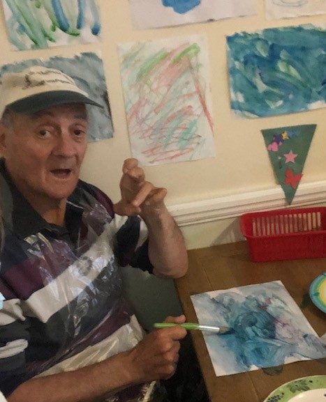 During the COVID-19 pandemic, the home experienced an increase in challenging behaviour and used creativity to help with this. Beresford, a resident at 60 Cobham Road, suffers with anxiety but the team have discovered that arts and crafts can help reduce his anxiety. Beresford enjoys drawing and painting. As soon as the arts and crafts equipment comes out, he immediately relaxes and smiles.