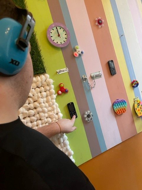 All the items on the wall provide residents with a different stimulation. There are items that move, feel a certain way, evoke different feelings, make a noise and don’t make a noise. Following the addition of the sensory boards, the team have seen improved concentration, creativity & problem-solving skills and behaviour from some of the residents. One person even likes to complete the maze on the wall while when discussing his care plan. This is because it helps him to process the information that he is hearing.