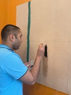 Everybody was encouraged to use their creative flair and freely paint on the board wherever they wanted. The team could see the progression of independence throughout the project and everyone was actively engaging.