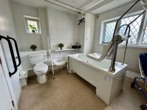 The ground floor has a shared bathroom, equipped with a high-low bath and a ceiling tracking hoist. We also have an additional wet room on the first floor.