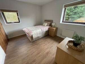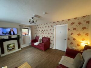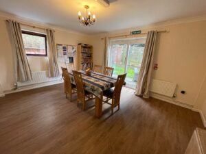 Our detached home comprises three private bedrooms. We have plenty of communal spaces, including a large lounge, dining room, a fully equipped kitchen, and an activity room – ideal for group activities and socialising with housemates!