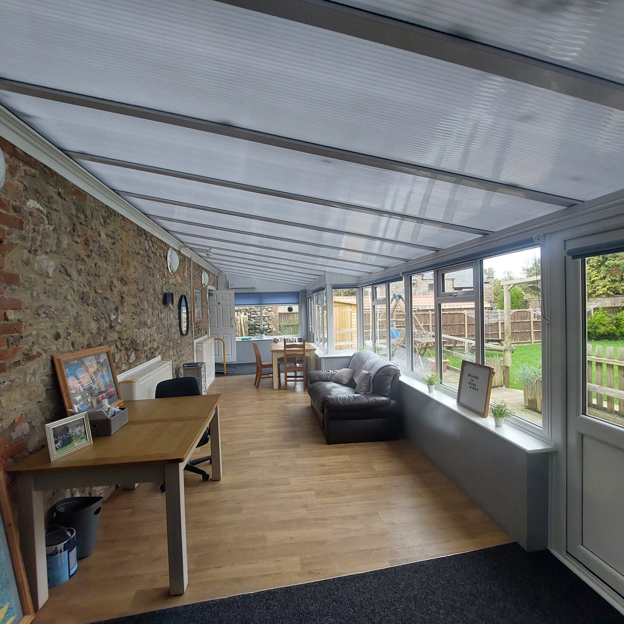 We have a sun room, overlooking one of three gardens, equipped with a ball pool, a large bean bag and comfy sofa, there are plenty of opportunities for quiet contemplation.