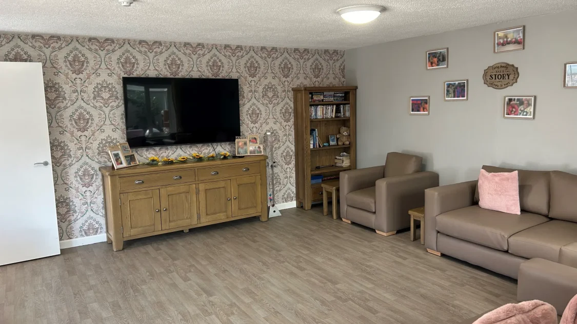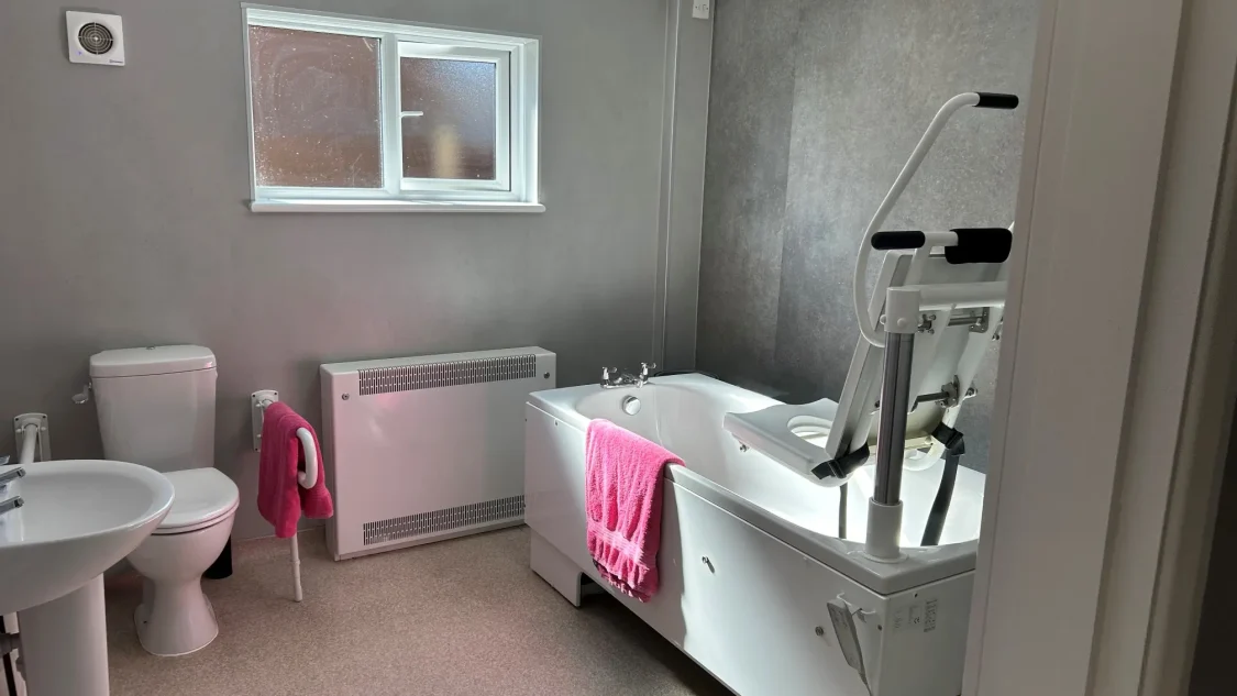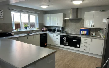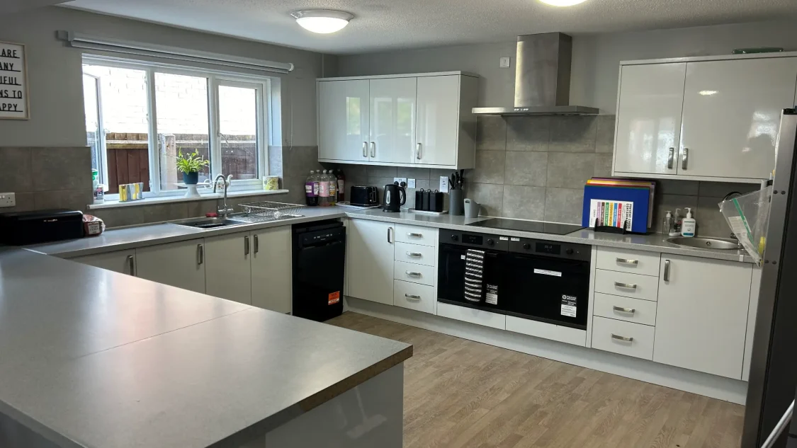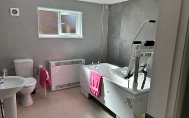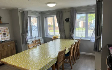 We have spacious communal areas such as a dining room and kitchen, great for enjoying tasty meals together! We also have two bathrooms in our home, one of which has been adapted for accessibility purposes with rails and ceiling tracking.