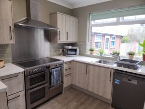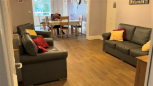 Our home features six bedrooms spread over two floors. We benefit from large communal areas, such as a spacious lounge and dining area, where the people we support can socialise with their housemates.