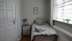 Our spacious detached home has six en-suite bedrooms, each with their own en-suite – perfect for private personal care needs. We encourage the people we support to decorate their rooms to their own personal style.