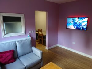 All rooms are single occupancy and five bedrooms have en-suite facilities, with the remaining two having easy access to a shared bathroom. We also have one fully self-contained flat adjacent to the communal home with its own front-door access – perfect for someone looking for more independence.