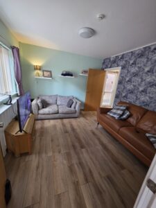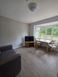Every building featured three apartments and a shared communal area, providing a comfortable and homely atmosphere. The communal areas are designed to foster a sense of community and relaxation. Furnished with comfortable settees and decorated to feel like home, these spaces also feature a large console table and a mini-kitchen area. They’re perfect for communal activities such as karaoke nights, games, and arts and crafts.