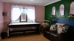 Other facilities within our home include a dining room with patio doors leading out to our accessible garden, a large accessible kitchen, a bathroom, a spacious lounge, and an activity/ therapy room.