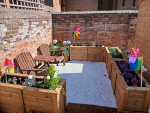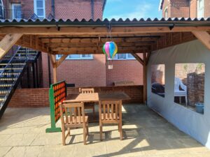 At the rear of the property, we have two gardens, one of which is being developed to encourage wildlife and a patio area which is the perfect spot for activities and parties!