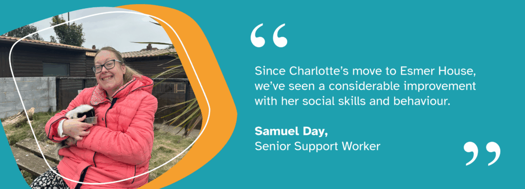 Since moving to Esmer House, Charlotte has continued to smash her goals, leading a healthier lifestyle and exploring new hobbies! Now, she’s more confident and thriving in her new home.
